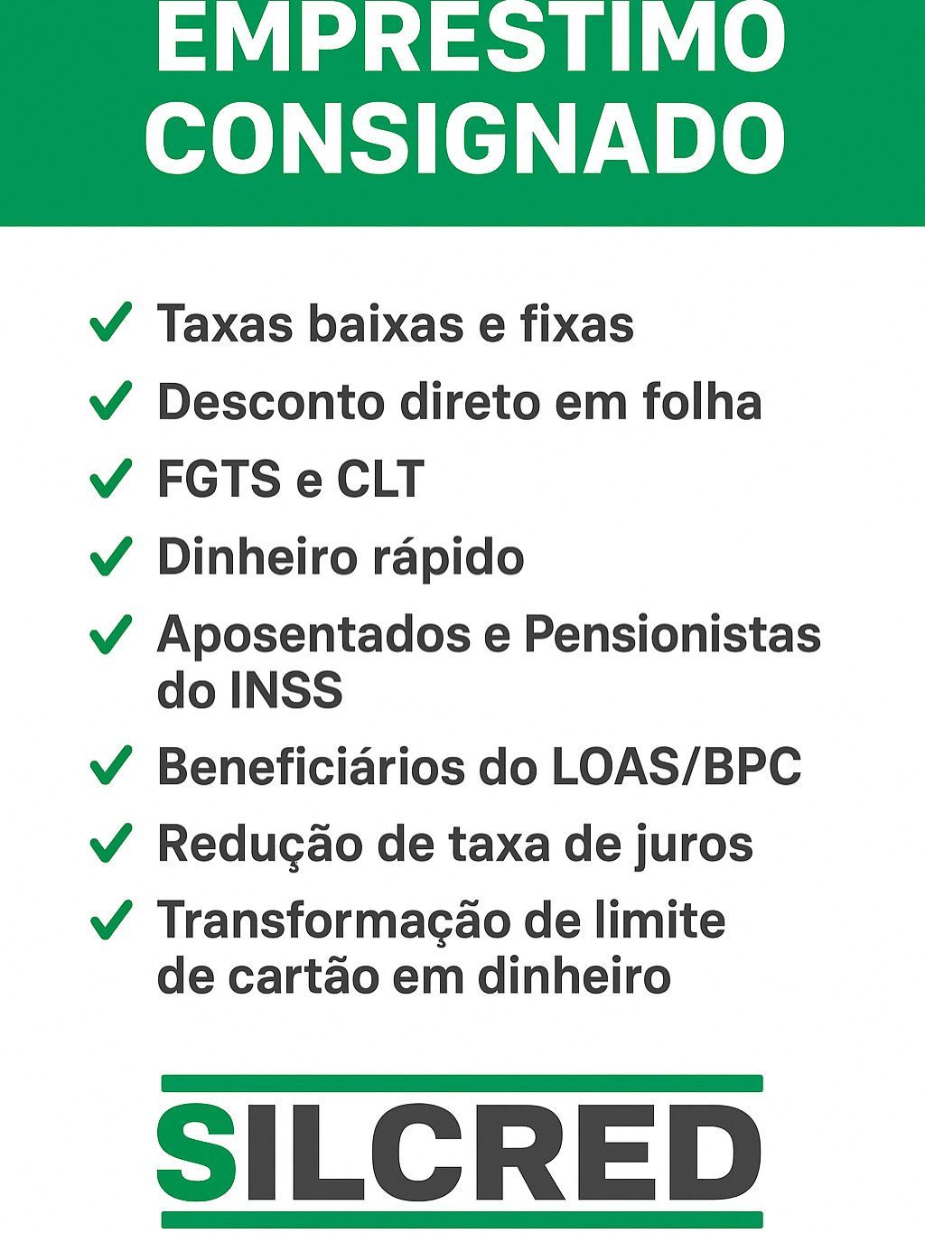 Por isso, para a SILCRED, nada é mais importante que viabilizar o resgate do crédito para muitos brasileiros que nela acreditam ou, ainda, que tenham na SILCRED a única possibilidade para a solução dos problemas.